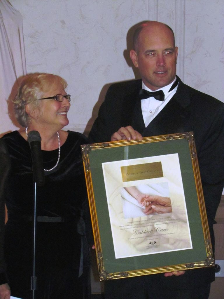 The plaque was read aloud and states "In Recognition and Celebration of Your 20th Anniversary, The Florida Center for Early Childhood Salutes Caldwell Trust Company for is Continued Support & Commitment to the Children and Families of Sarasota County. We know it's because Caldwell Cares. Thanks for caring and thanks for investing in our children today for a better tomorrow."